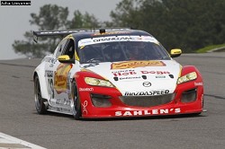 In the initial practice sessions, Team Sahlen focused upon set up knowledge and long runs on Tires. #42 RX-8, with Dane Cameron and Wayne Nonnamaker, made several changes to look for the optimal set up. The #43 and #49 Mazdas, driven by Joe Sahlen, Joe Nonnamaker & Will Nonnamaker, run long runs on the tires to see what wear would be like. In fact, #49 ran the most number of laps of any ROLEX competitor. The positive news was that the drivers were able to get within about a second of their best times even on old tires.
